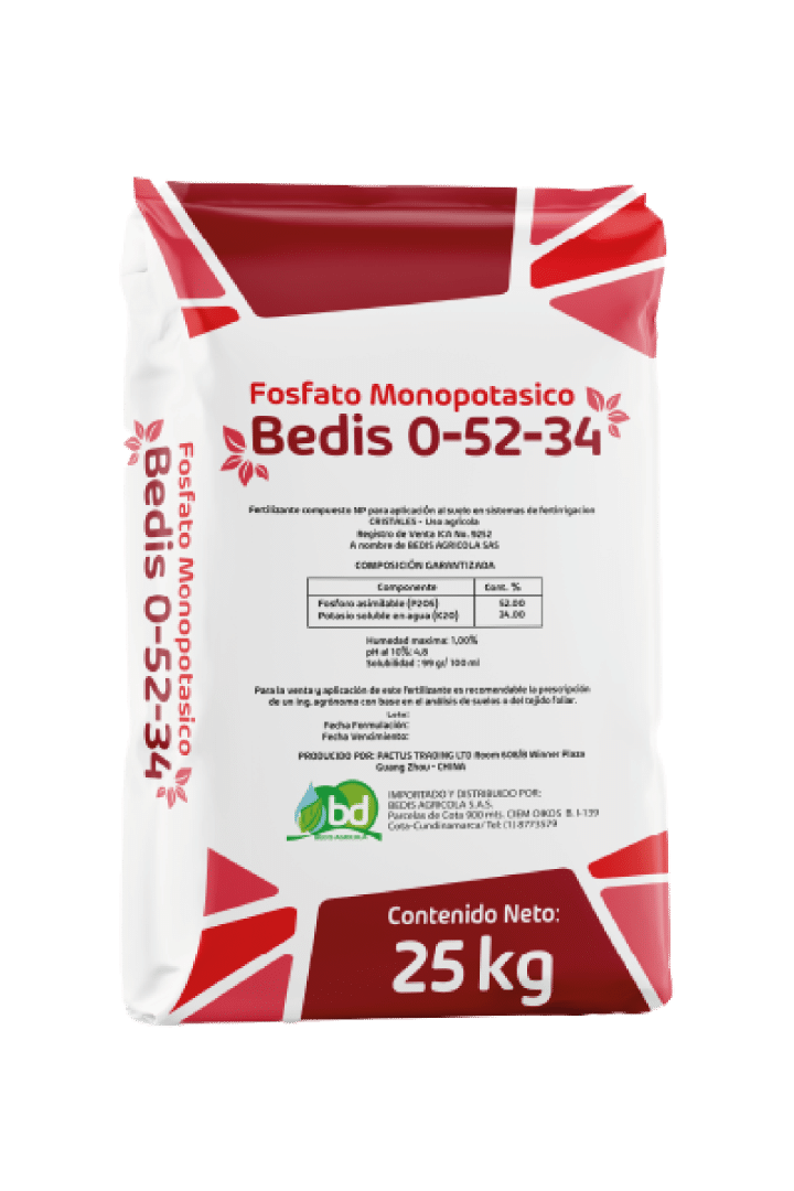 Fuente altamente concentrada en Fosforo (P2O5), y Potasio (K2O), en presentación de cristales 100% solubles y libre de impurezas.